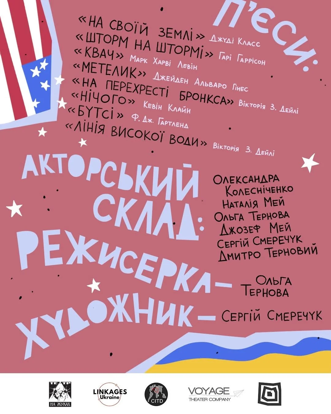 High Water Line, staged reading at Theatre na Театр на Жуках - Theatre na Zhukah as part of Voyage Theater Company’s play exchange through the Worldwide Ukrainian Play Readings/CITD's LINKAGES: UKRAINE project. July 17, Pintagon Art Club, Kharkiv, Ukraine.